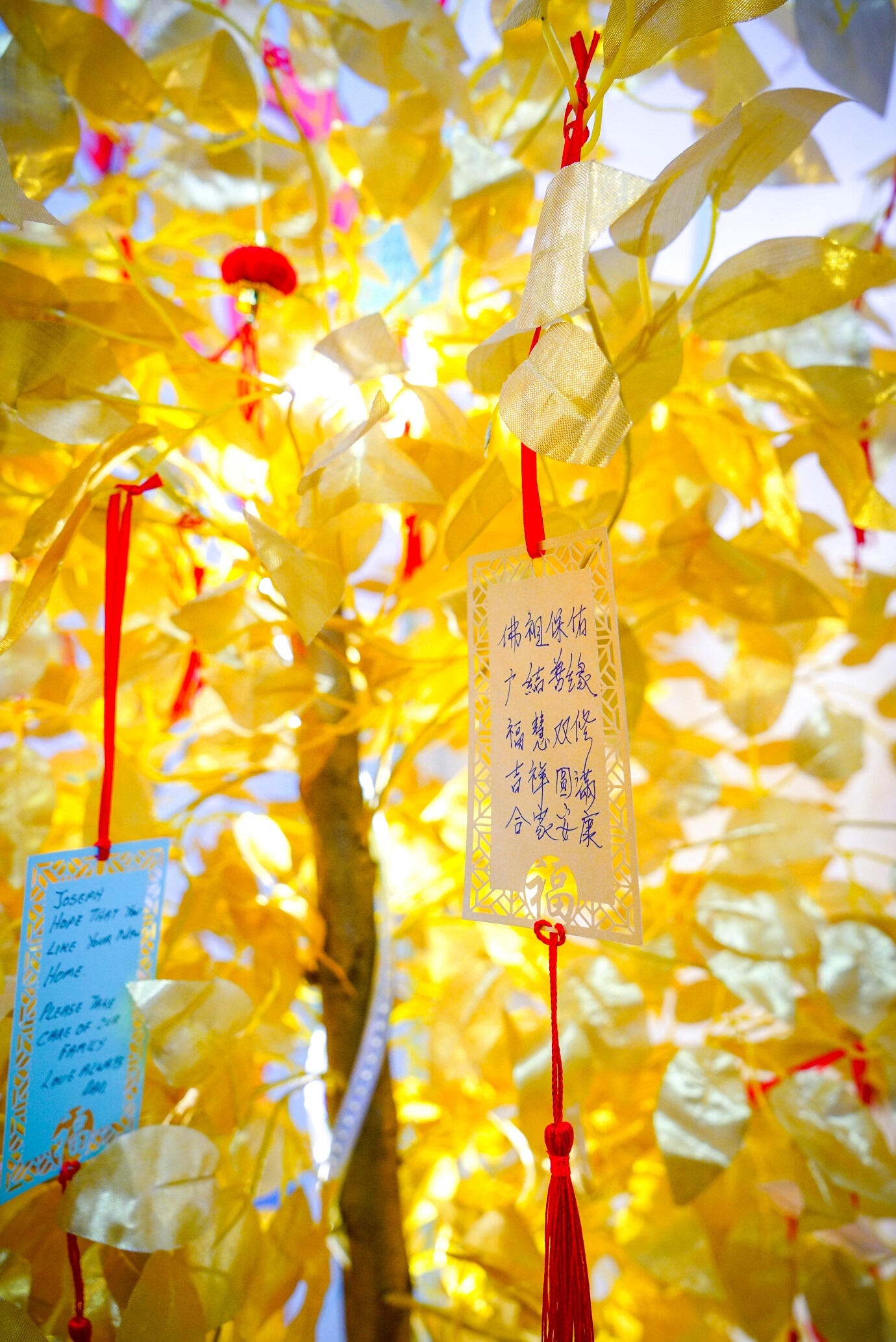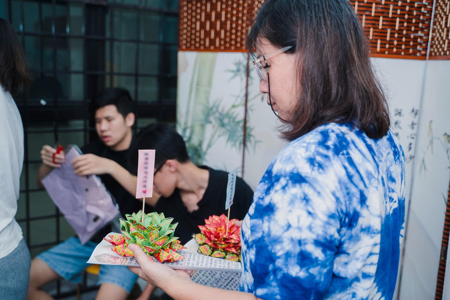 由後代親手將蓮花送出,象徵感恩祖先庇佑,